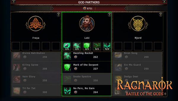 Após entrares no campo de batalha sagrado, as Nornas vão introduzir-te à história do Ragnarök. Quando estiveres a par de tudo, Hulder, o servente das Nornas, vai dar-te a escolher entre três deuses companheiros: Loki, Freya ou Njord!